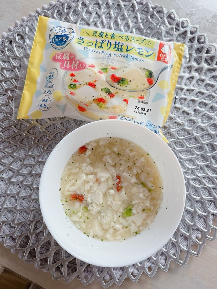 簡単に作れるのとお豆腐のスープなのでタンパク質がしっかり摂れてダイエットに良いのと