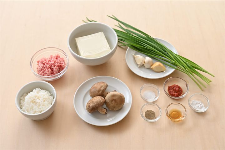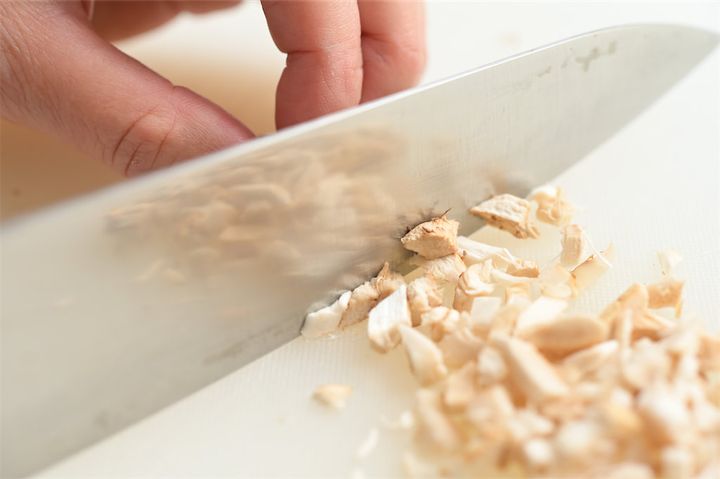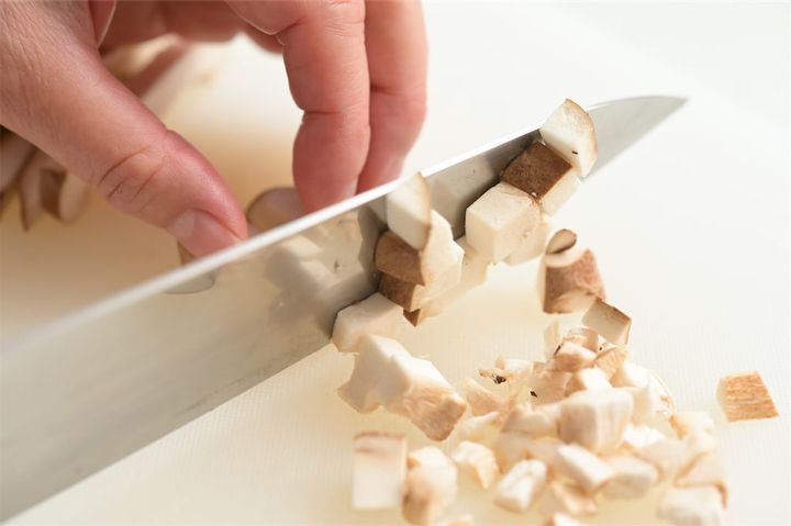 1.しいたけは石づきを取り、軸も含めてみじん切りにする。