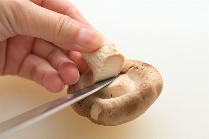 貫井さんいわく、「軸は、しいたけの香りの宝庫。石づきを取って縦に裂き、細かく刻めば食べやすくなります。汁物や炒め物のアクセントにも便利ですよ。これからご紹介する麻婆豆腐にも、投入します!」とのこと。