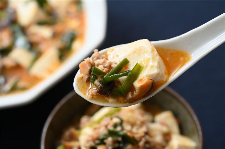 いつもの麻婆豆腐と比べると、つゆがたっぷりですね。