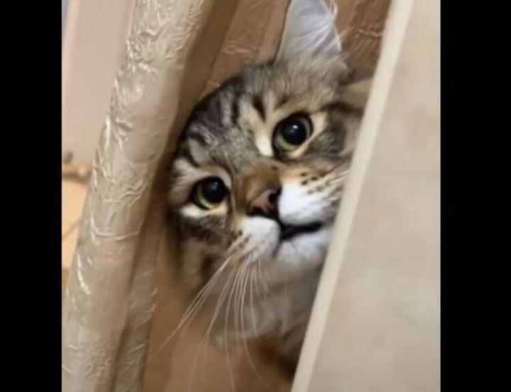 なにしてるん?飼い主のことを覗き見する猫が可愛い♪