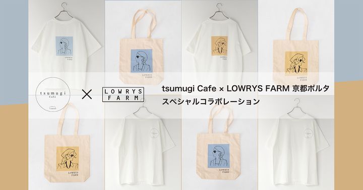 「tsumugi cafe」は、「LOWRYS FARM(ローリーズファーム)」とのコラボ商品をLOWRYS FARM京都ポルタ店にて販売します。2024年春にリニューアルOPENすることとなった「LOWRYS FARM京都ポルタ店」。スタイリッシュな外国人をイメージしたシンプルでおしゃれなイラストが特徴的なデザインとなっています。