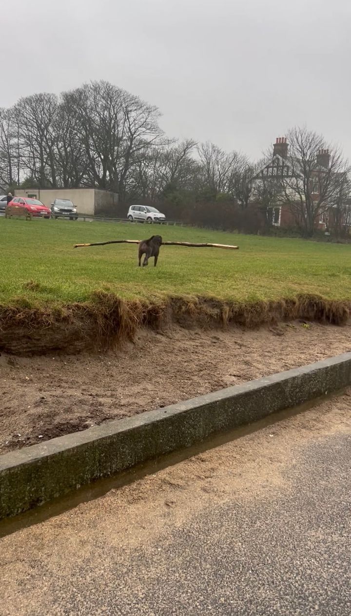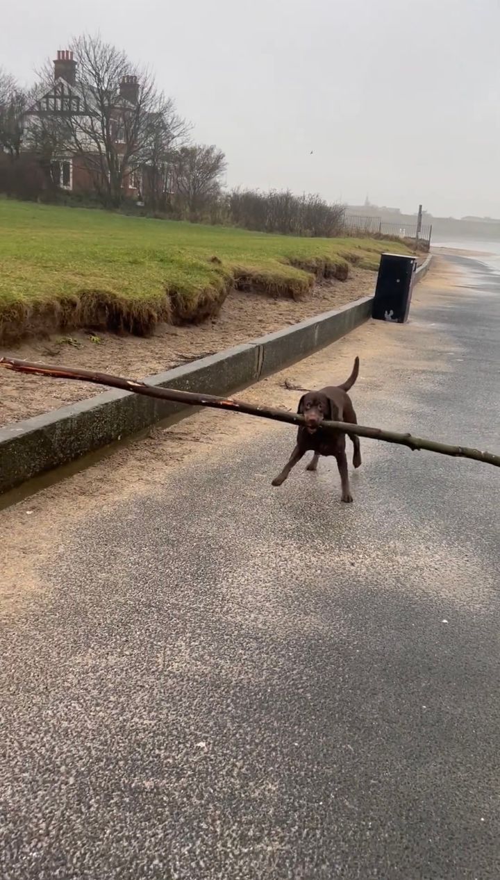 しかし、この犬は引き上げた巨大な木の枝をくわえて持ち上げてみせました。 嬉しそうに尻尾をフリフリしていますが、「見てみて~!この枝カッコいいでしょ!」なんて自慢しているようにも見えますね。