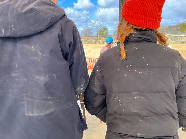 コースの土の状態にもよりますが、多少ドロの跳ね返りはあるので、背中や顔が汚れます。