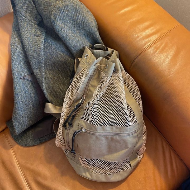 予約購入した春夏のアイテムの中でも、とびきりのお気に入りはAURALEEで見つけたAetaとの別注バックパックです。メッシュのデザインが春夏にぴったりだな、と即決。パソコンもスッポリ入る大きさで使い勝手もいいし、見た目もスタイリッシュ。個人的に、おしゃれなバックパックっていざ探すとなかなか見つからないので、いいなと思ったらすぐ買うことにしています。