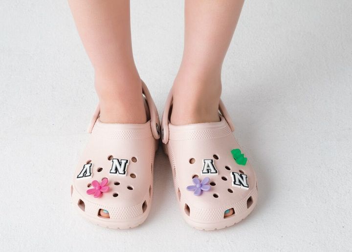 取り外し可能なジビッツTMチャームでオリジナルの一足を作ってみては? シューズ¥7,150 アルファベットチャーム 各¥550 ベアチャーム5PACK¥2,420 フラワーチャーム5PACK¥1,925(クロックス/クロックスカスタマーサポート TEL:0120・55・9694)