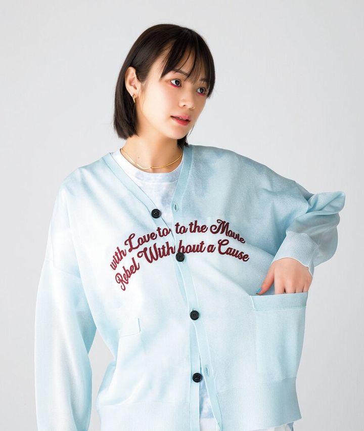 レトロな雰囲気ながら、光沢と程よい透け感に上品さも漂う。カーディガン¥40,700(ダイリク info@dairiku-cinema.com) Tシャツ¥11,000(オリジナル チャコール/チャコール トーキョー TEL:080・1176・1019) ネックレス¥20,900(マリハ/シップス インフォメーションセンター TEL:0120・444・099)