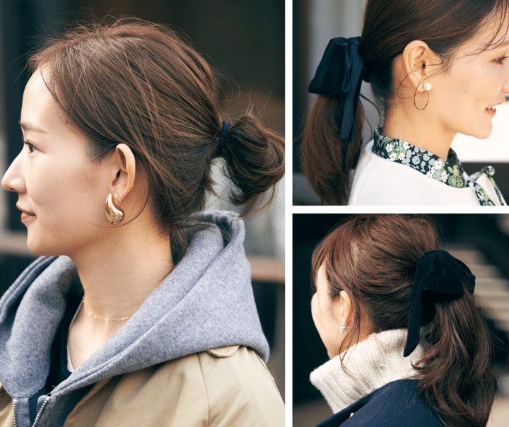 マフラーやタートルなどで顔まわりにボリュームが出やすい冬は、実はまとめ髪が多くなる季節。特にひとつ結びは定番だと思いますが、簡単だからこそ‶疲れて見えない”仕込みが必要。eluのポップアップで出会ったおしゃれなママたちも、実は結ぶ前にしっかり仕込みをしていました。すぐマネできるテクニックをご紹介します。