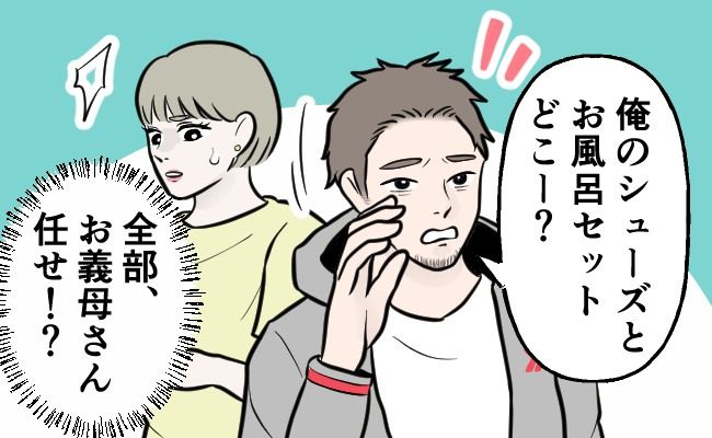 さらに夫は、「俺の荷物どこ?」「シューズは?」「お風呂セットないんだけど?」と自分で探そうともせず何でも義母に聞く始末……。ここまで義母に頼りっぱなしな人だとは思っていなかったので、夫にも義母にも驚いてしまいました。(ややや さん)