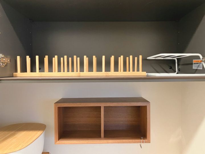 わが家では、このアイテムをカップボードの吊り戸棚の下へ設置して愛用しています。石膏ボードに簡単に取り付けられるので壁を有効活用できます。さらに縦でも横でも使えるので、食器収納以外にも活用の幅が広そうなアイテム!