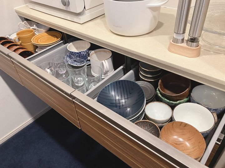ちなみに、引き出しにも食器を収納しています。しかし、引き出しでは収納アイテムは何も使っていません。