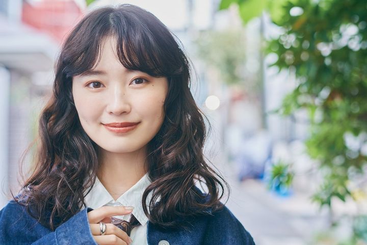 センターパートからのゆるふわウエーブは、カジュアルさに甘さを潜ませたズル可愛な魅力。重さを残した肩下のミディアムヘアに大きめカールのしっかりパーマをかけておくと、ムースをもみ込むだけで弾力復活。ツヤと透明感の出るココアグレージュの暗髪で、韓国女子っぽいピュアな色気を演出。