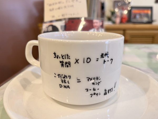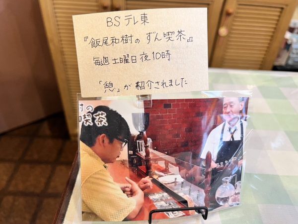 そのため純喫茶好きの間では大人気で、純喫茶をまとめた本をはじめとした様々なメディアで取り上げられています。2023年秋にはBSテレ東「飯尾和樹のずん喫茶」でも紹介され、お店には記念のカップが飾られていました!