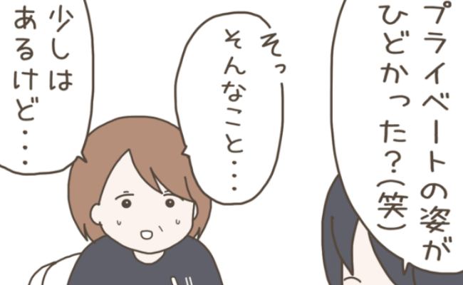 「推しとの生活はどうなの?」と聞かれ、口ごもっていると、「プライベートの姿がひどかった?」と笑う友人。