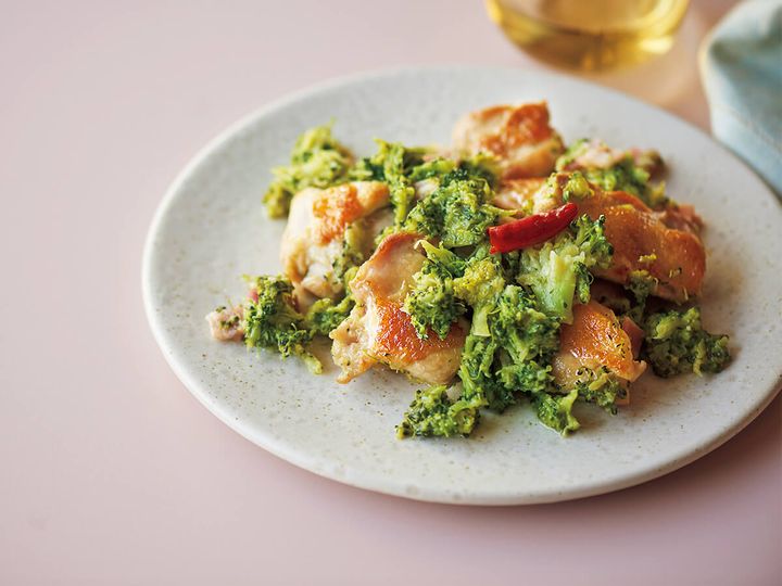 香ばしく焼いた鶏肉とくたくたの甘いブロッコリーが好相性! イタリアンのブロッコリーソースをヒントに。辛味を加えたい場合は、ブロッコリーを炒めるタイミングで赤唐辛子を加えましょう。