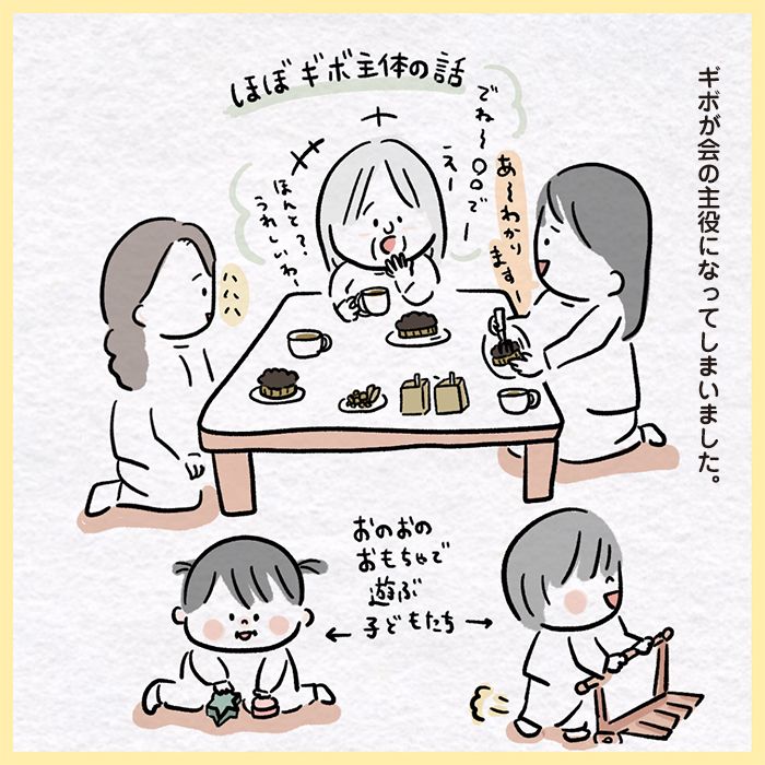 家でママ友とゆっくりおしゃべり、のはずが…。義母の話に付き合うことになってモヤモヤ…【みんなのギリギリギフボ・54】
