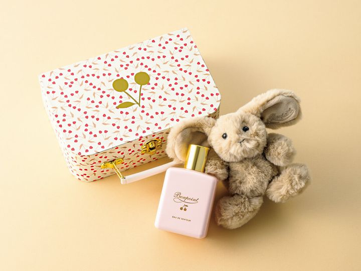 優しい表情のぬいぐるみと、アルコール不使用で赤ちゃんも使え、ほのかな香りが魅力的なボンポワン オー ドゥ サンターが、ミニトランクに入ってセットに! 赤ちゃんとお母さん、どちらも使えるのがうれしい魅力。