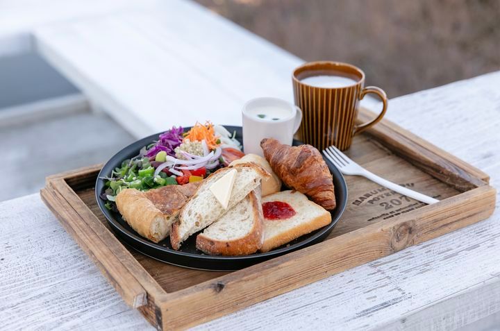 土日祝限定オープンの「am:b 足羽山モーニングベーカリー」では3月2日(土)より新しいモーニング「MORNING MENU」を提供中。店内工房で焼き上げる5種のパンと、彩りサラダ、キッシュ、スープをワンプレートを楽しめます◎