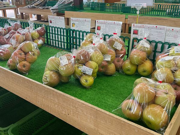 店内には、新鮮な野菜や果物がたくさん並びます。 どれも新鮮。旬の味覚を見つけることができます。 野菜は生産者の名前が記載されているので、安心感をもって買物できるのもいいですね。