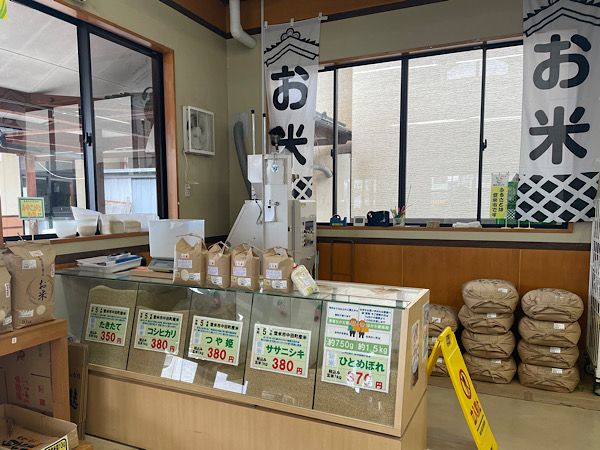 米どころの登米ならでは、お米の量り売りをしていました。 必要な分を買えるのはサスティナブルでいいですね。 量り売りの他に、5kg・10kgも置いてあります。 種類もあるのでお気に入りのお米を買うもよし、少量を銘柄を変えていろいろ楽しむもよしですね。