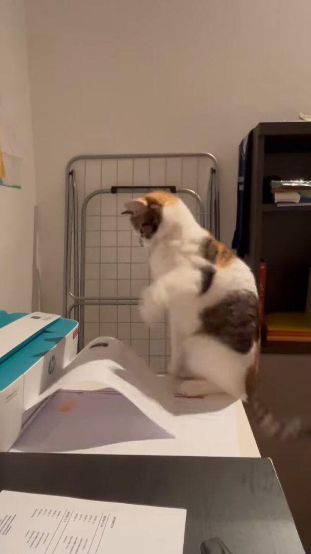 プリンターの印刷音に合わせて体が勝手に動いている!? クスっとしてしまう、猫のカワイイ反応を捉えた映像をご紹介します。