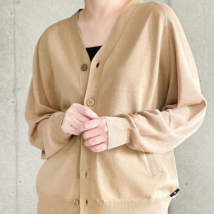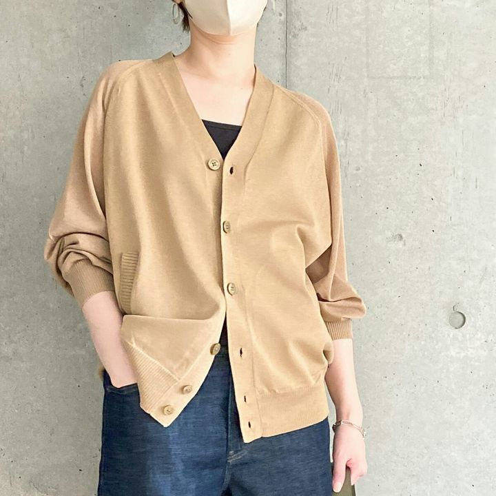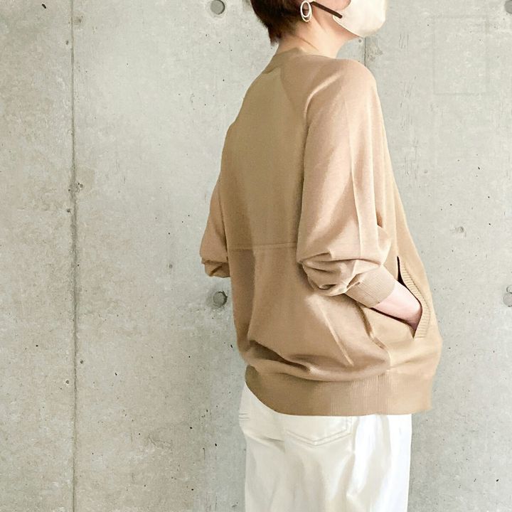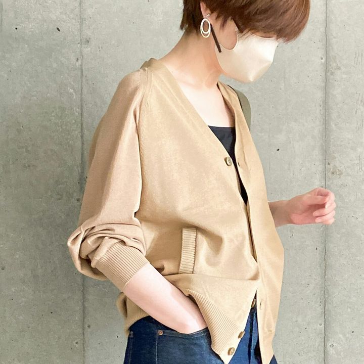 特にこの袖の感じが秀逸。ほわんとたるみができてきれいめに着ることができます。カーディガンでこのシアー感がある袖の感じ、とっても雰囲気いいですよね。