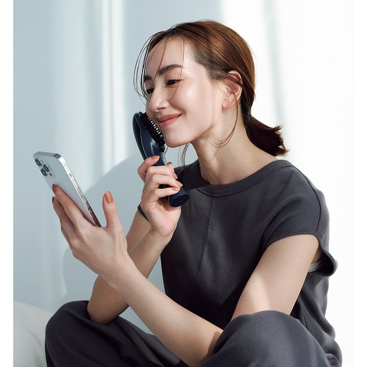 フェイスラインにアプローチするEMSと+αのケアがおうちでスマホ片手に〝ながら〟でできる時代に感謝。継続することで、悔いなしの写真写りに期待!