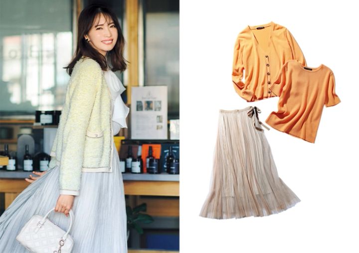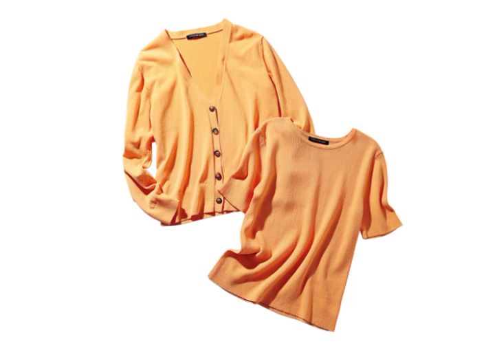 夕方からのお疲れ顔もカバーできるきれい色を〝シャーベットカラーアンサンブル〟