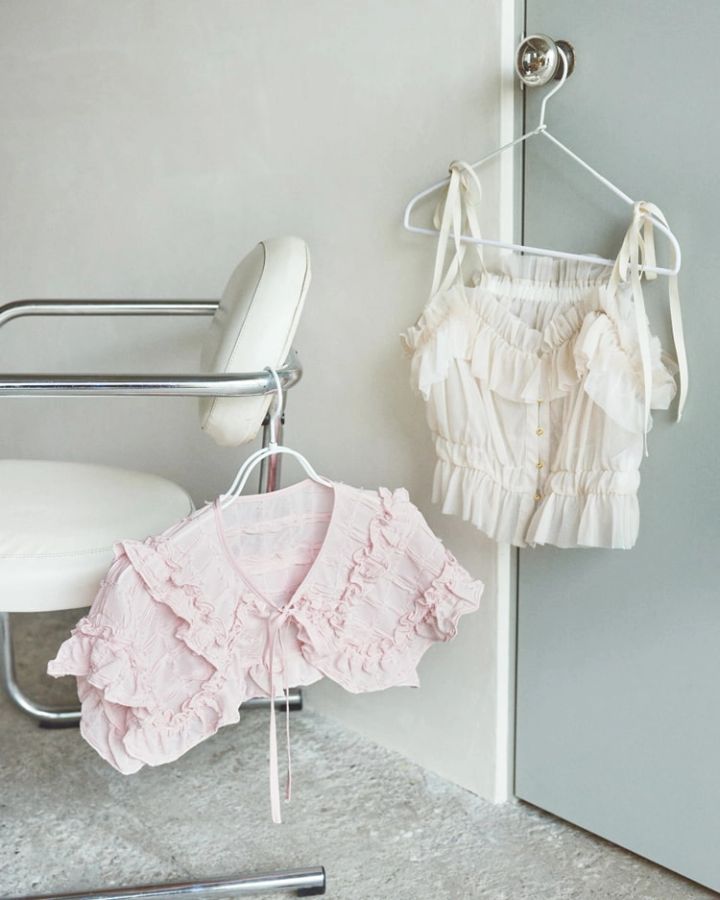 エアリーなフリルで透明感も爆上がり♡ 甘さマシマシな肩のリボンにきゅん。