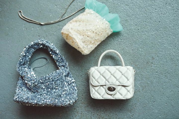 【上】スパンコールつきポシェット 6,600円/キャセリーニ 【右】ビジューつきシルバーハンドバッグ 15,400円/ダイアナ(ダイアナ 銀座本店) 【左】シルバースパンコールつきバッグ 4,399円/WEGO