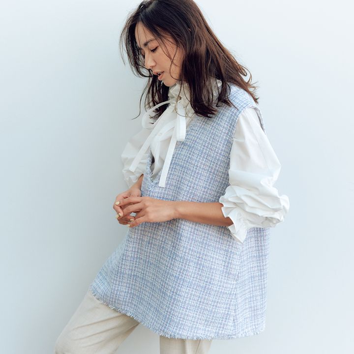 【通勤、お出かけetc.】シンプル派こそ着たい『ツイードジレ』は体形カバーにも◎