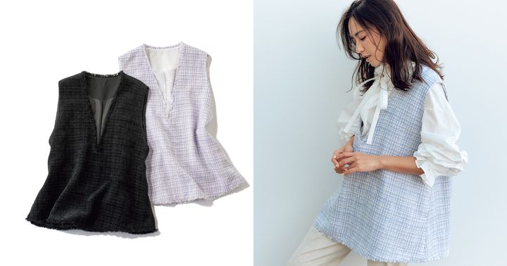 だんだんと暖かくなり、春本番はすぐそこに。新しい出会いが多いシーズンだからこそ、好印象を狙いたい!そこで今回は、可愛らしさと優しげな雰囲気を両立させたアイテムを多く揃えました。今回は、ゆったり着られるシルエットと春らしいカラーで、着回し力抜群のツイードジレをご紹介します。