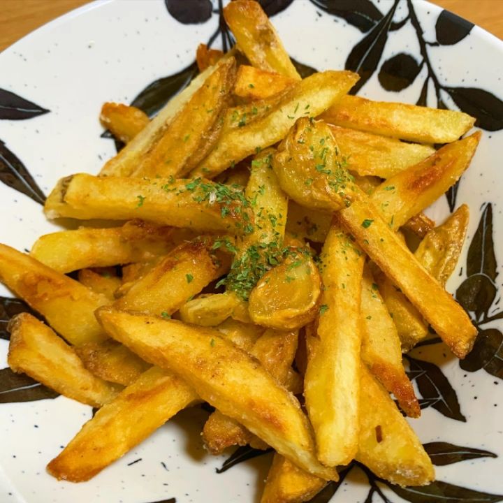 ポテトフライはミルフィーユ鍋を煮込む間に、サッと揚げるだけで完成します。カリッとした食感とほどよい脂っぽさが、ミルフィーユ鍋の箸休めに。ガーリック風味がクセになり、お酒もどんどん進みそう!