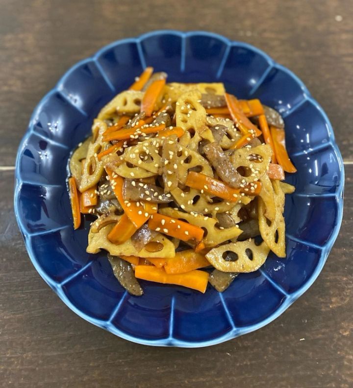 ミルフィーユ鍋の付け合わせには、甘辛く煮詰めたきんぴられんこんがいいでしょう。薄味と濃い味の2品を合わせると、食卓にメリハリが出るのでGOOD♪