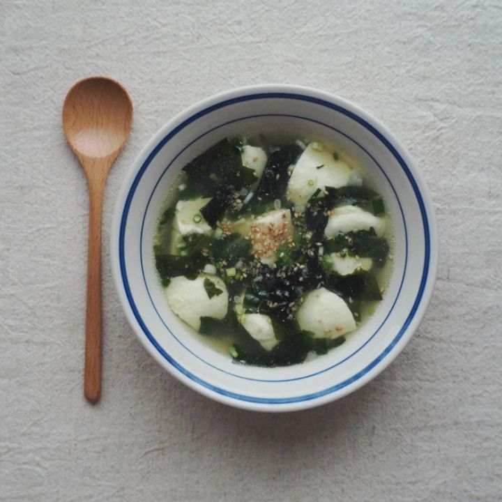 豆腐とわかめのヘルシーなスープ。体にやさしい献立にしたい!という日には、ぜひ合わせてほしい組み合わせです。味が物足りない場合は、スープにおろしにんにくを入れるとパンチが効きますよ。