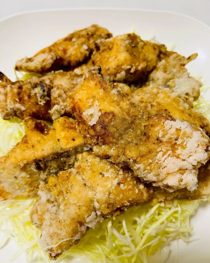 さばや鮭など、お好みの魚を竜田揚げにするとおいしいですよ。外はサクサク、中はふっくらとした食感がたまりません。ヘルシーなミルフィーユ鍋に、ガッツリおかずを合わせたいときにぜひ作ってみて!