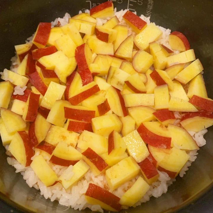 甘くてホクホクのさつまいもは、さつまいもご飯にすると食べ応えたっぷり!バターを絡めることでコクがアップしますよ。ミルフィーユ鍋と合わせると、ボリューム満点の食卓になるので、食べ盛りの子どもたちも大満足するはず。