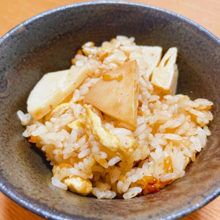 たけのこの香りが広がる魅力的な主食。ミルフィーユ鍋といっしょに食べると、鍋に入っている白菜や豚バラ肉も、たけのこの香ばしさに包まれて贅沢な気分になりそう!