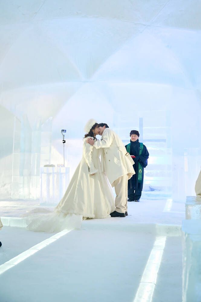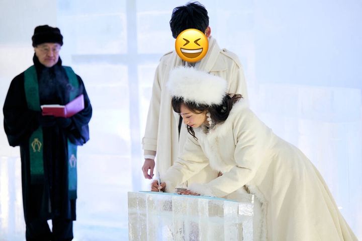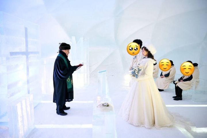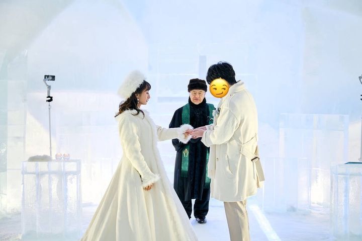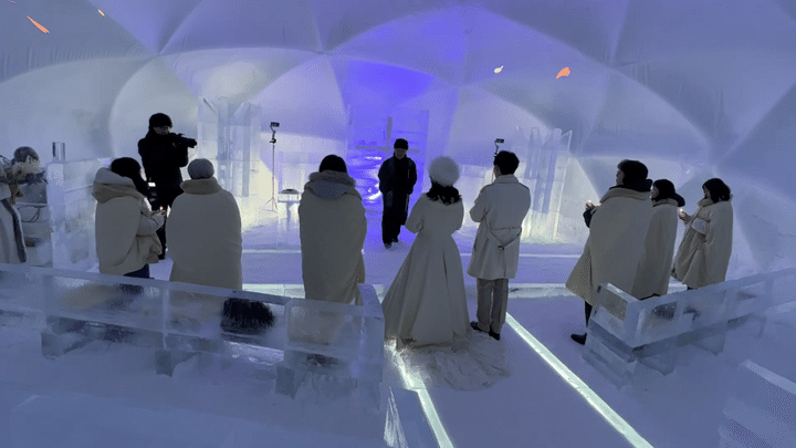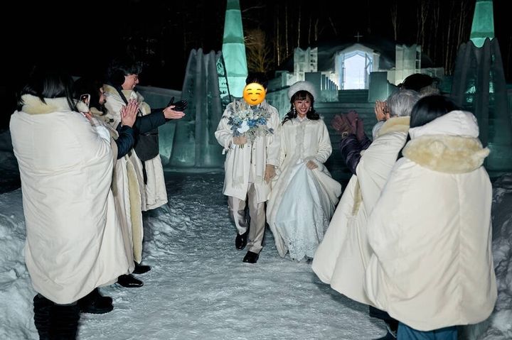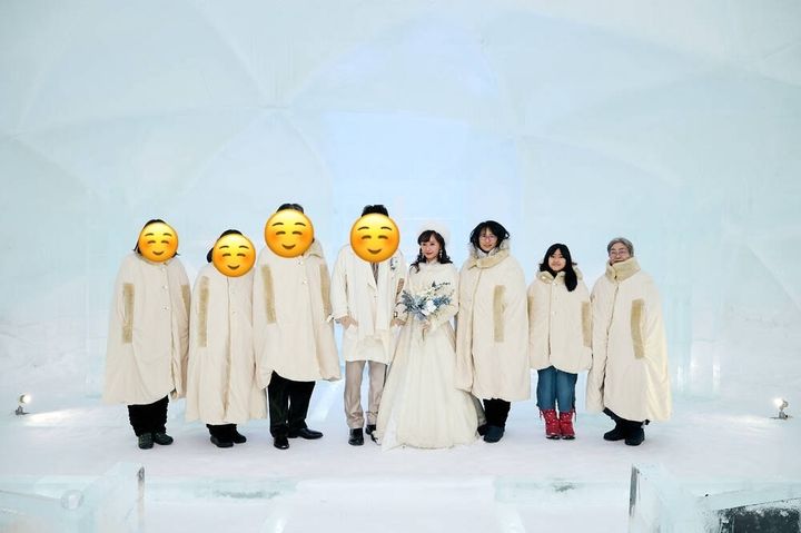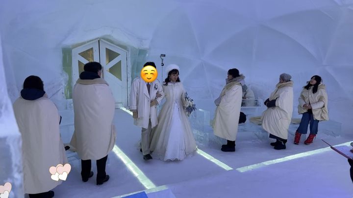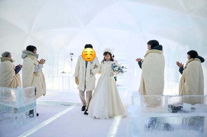 出典:MORE氷の教会内の床は意外と滑らず歩けます!普通のバージンロードより短い距離なので、寒い中ではありますが頑張って歩けます!笑氷の教会内の方があたたかいですが、新郎と私は事前の撮影をしている(また新たに記事を書く予定です)ため、芯から冷えていました!後々参列してくれた家族から震えていたよ🫨と言われました。笑因みカイロを6枚ほど貼っています🧊家族もぐっときている様子があり、とっても印象的でした!