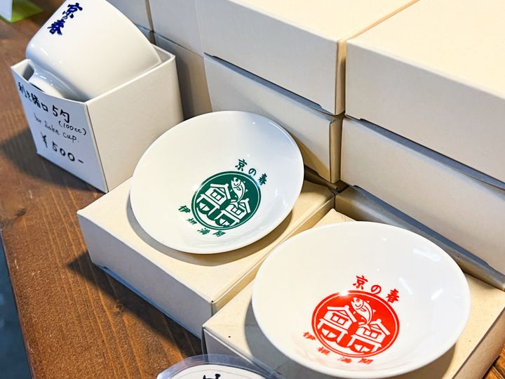 「向井酒造」には、伊根の舟屋のイラストをラベルにした日本酒「舟屋の里」や、おちょこも販売しているので、お土産にぜひ買ってみてくださいね。