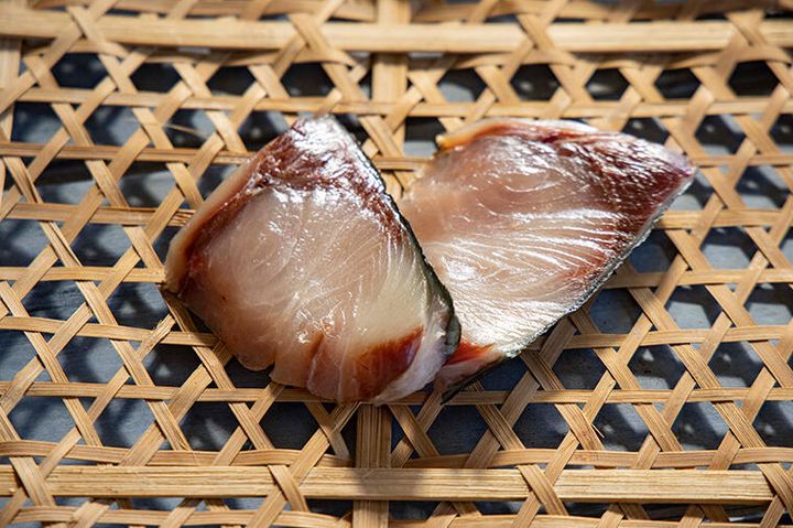 洗った切り身は塩水に浸す際、8%の濃度の塩水に12分間浸けるのが島源商店の基本だ。ただし、魚の状態を見て、濃度や浸け時間を調整する。今回のブリの切り身の干物は、同じ濃度と浸水時間でつくったアジの干物よりも塩が強めに感じた。切り身は身が露出している部分が多いため、皮が残っている開きよりも塩が入りやすいのだ。