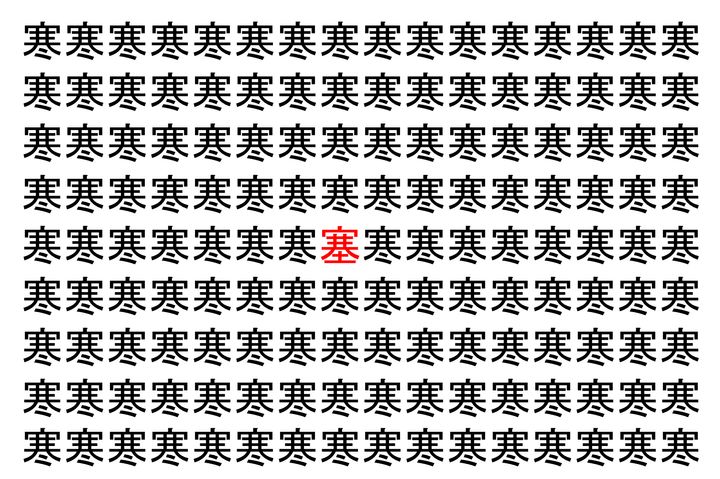 【脳トレ】「寒」の中に紛れて1つ違う文字がある!?あなたは何秒で探し出せるかな??【違う文字を探せ!】