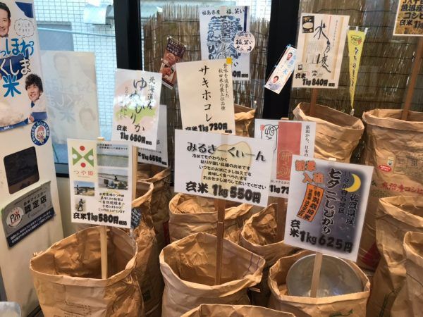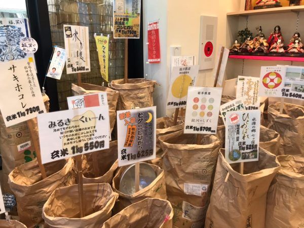 美味しそうなお米がずらっと!!選りすぐりの産地直送米・無農薬米など約30銘柄を店頭精米で販売しているとのことです。注文を受けてから、お客様の目の前で好みに合わせ精米し、新鮮なお米の販売や玄米の持ち込みによる精米もしてくれます。 手作りおにぎり・お惣菜・ごはんのお供が売っているコーナーもありました。