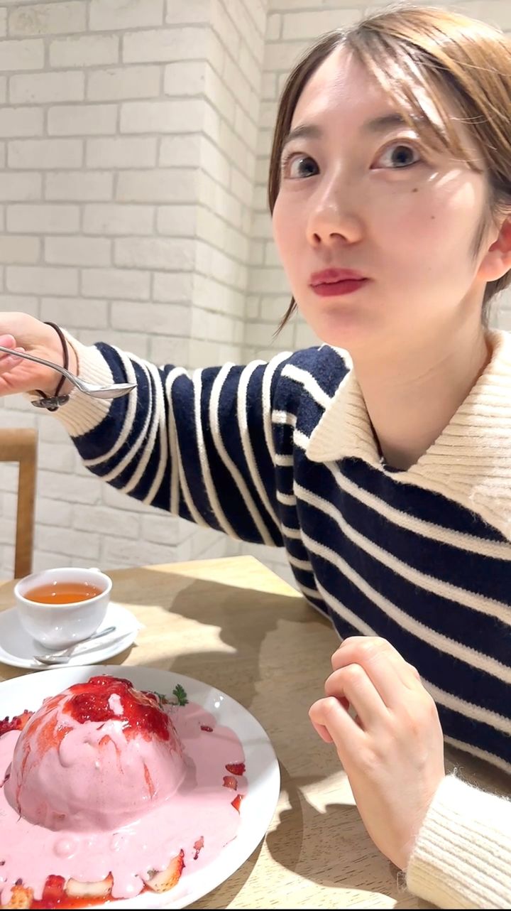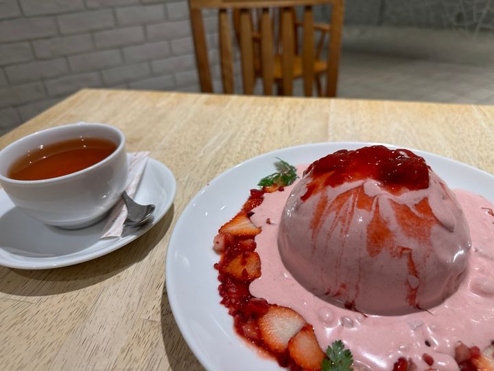 二階にはカフェが併設されていました🎵わたしはイチゴのスフレを注文