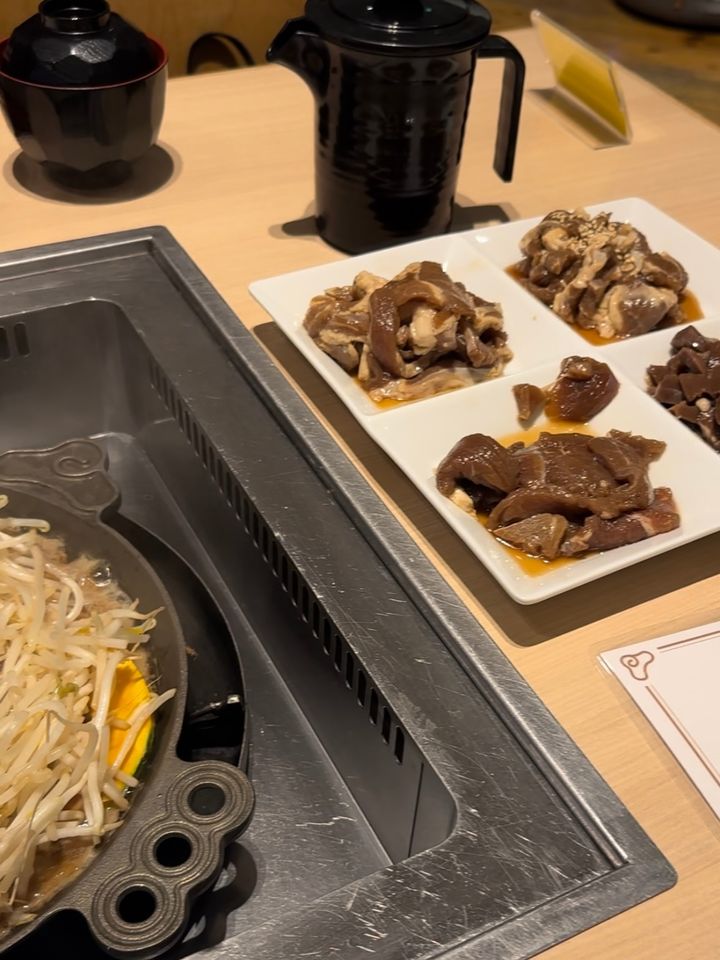 特上ラムと、ハツが脂が少なくて食べやすかった!卵も付けられて、すき焼き風にして食べてみました♥︎