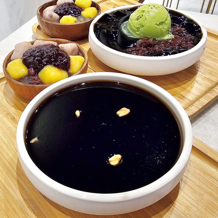 と語るのは広報の林佑臻さん。台中で創業し、現在は台北市内に2店舗を構える。’22年には香港にも出店。伝統的な製法を守り、新竹県關西産の仙草を8時間、じっくり煮込んだ上で独自の味わいを作っていく。仙草凍や燒仙草のほか、珍しい仙草味のかき氷もあり、バリエーションは豊富。燒仙草のトッピングには弾力性のあるサツマイモ団子やタロイモ団子、白タピオカのほか、プチプチとした食感の紫米と小豆がセットになっている。さらに仙草凍には抹茶アイスやタロイモペーストを加えるなど、ひと捻りある仙草スイーツが楽しめる。