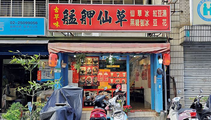 「台北の台所」と称される濱江市場に近い一軒。赤い提灯と看板が目印で、地元の人たちがふらりと立ち寄っていく。店名にある「艋舺」とは台北の下町「萬華」の旧名。これは店主が昔ながらの仙草スイーツの作り方を萬華で学び、ここにある薬草店から仙草を仕入れていることに由来する。奥にある調理場では毎日6時間かけて仙草を煮込んでおり、これに黒糖を加え、濃厚な風味に仕上げている。トッピングは20種ほどあり、芋団子や金時豆、タロイモ、粉粿(サツマイモの粉をゼリー状に固めたもの)などが人気。なみなみと注がれた燒仙草は具材が加わるとかなりのボリューム。これだけでも十分な満腹感が得られる。なお、冷めると徐々に固まり始め、食感が変化していくのも面白い。