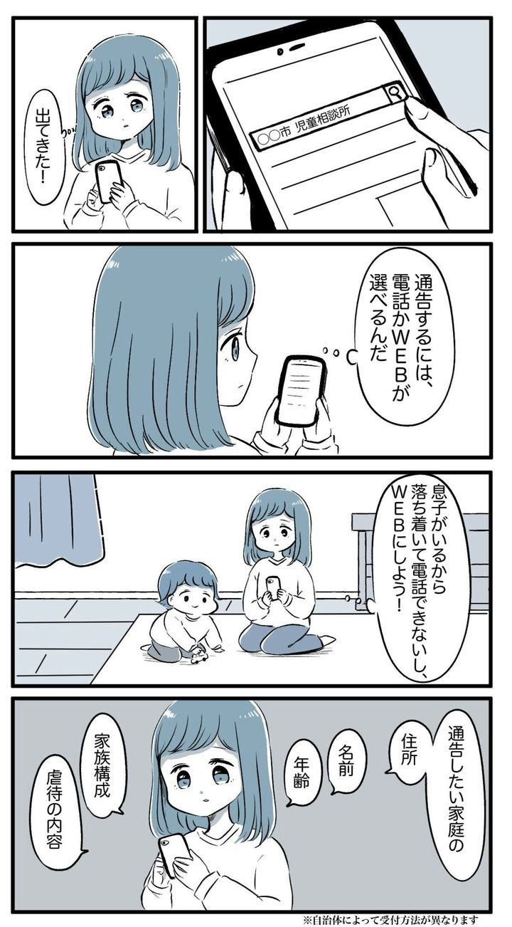 自宅に戻った主人公は、勇気を出して児相に通告。WEBからの匿名通告を行いました。結果、すぐに児相が介入した様子で、中野家にも変化が見られたそうです。