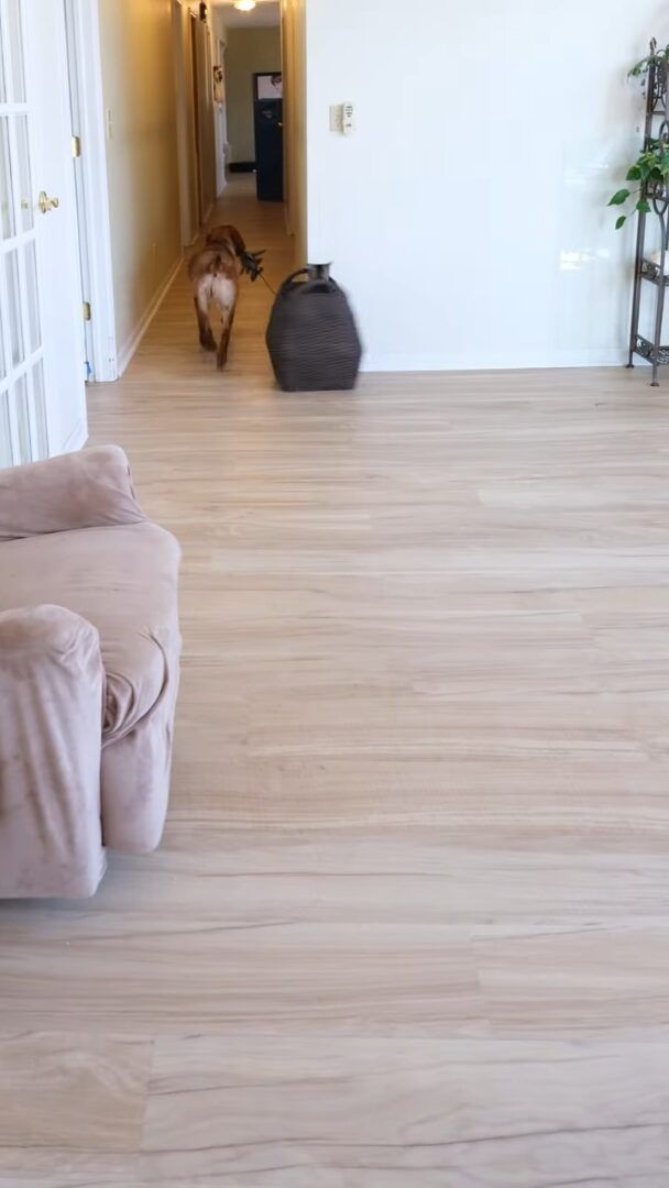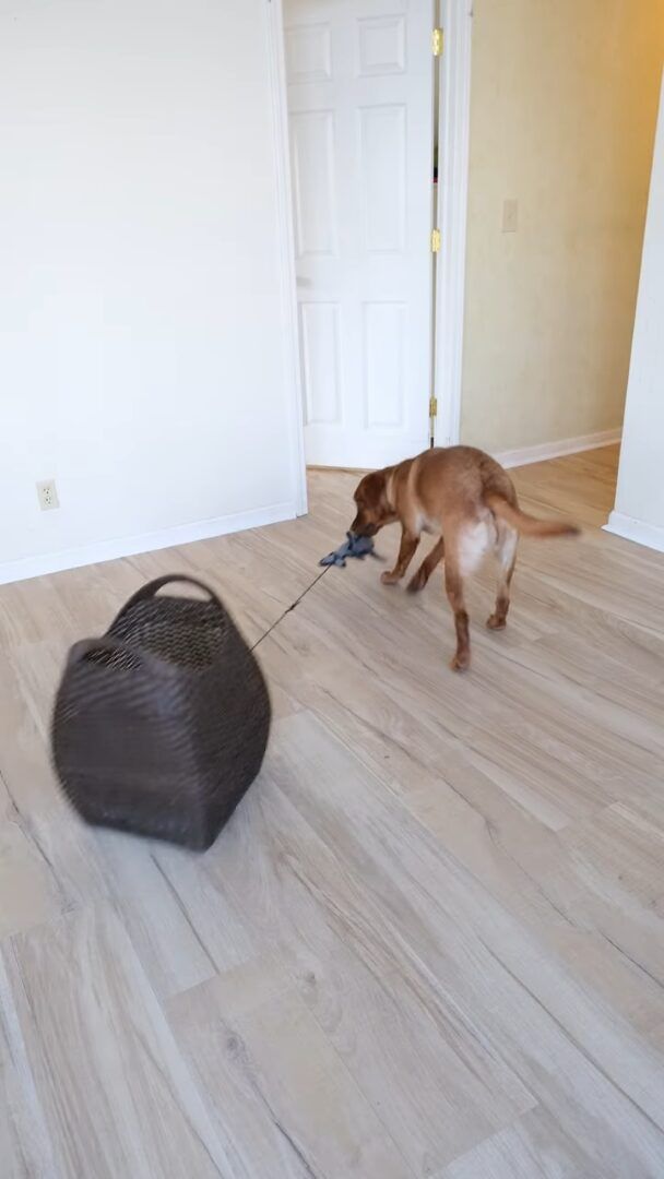 賢いこの子は、飼い主さんの伝えたいことをしっかり学び取ったようです。 取っ手のオモチャを口にくわえると、バスケットを引っ張り運ぶようになったのです。