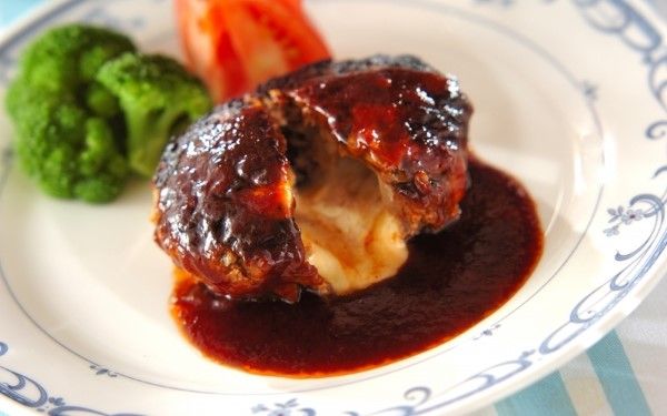 みんな大好きハンバーグの中から、チーズがトロ~ッと出てきて感動の美味しさ! チーズが漏れないように肉ダネの中心に包み、完全に覆うように整えましょう。赤ワイン・ケチャップ・ウスターソースで作る簡単デミソースも絶品です。